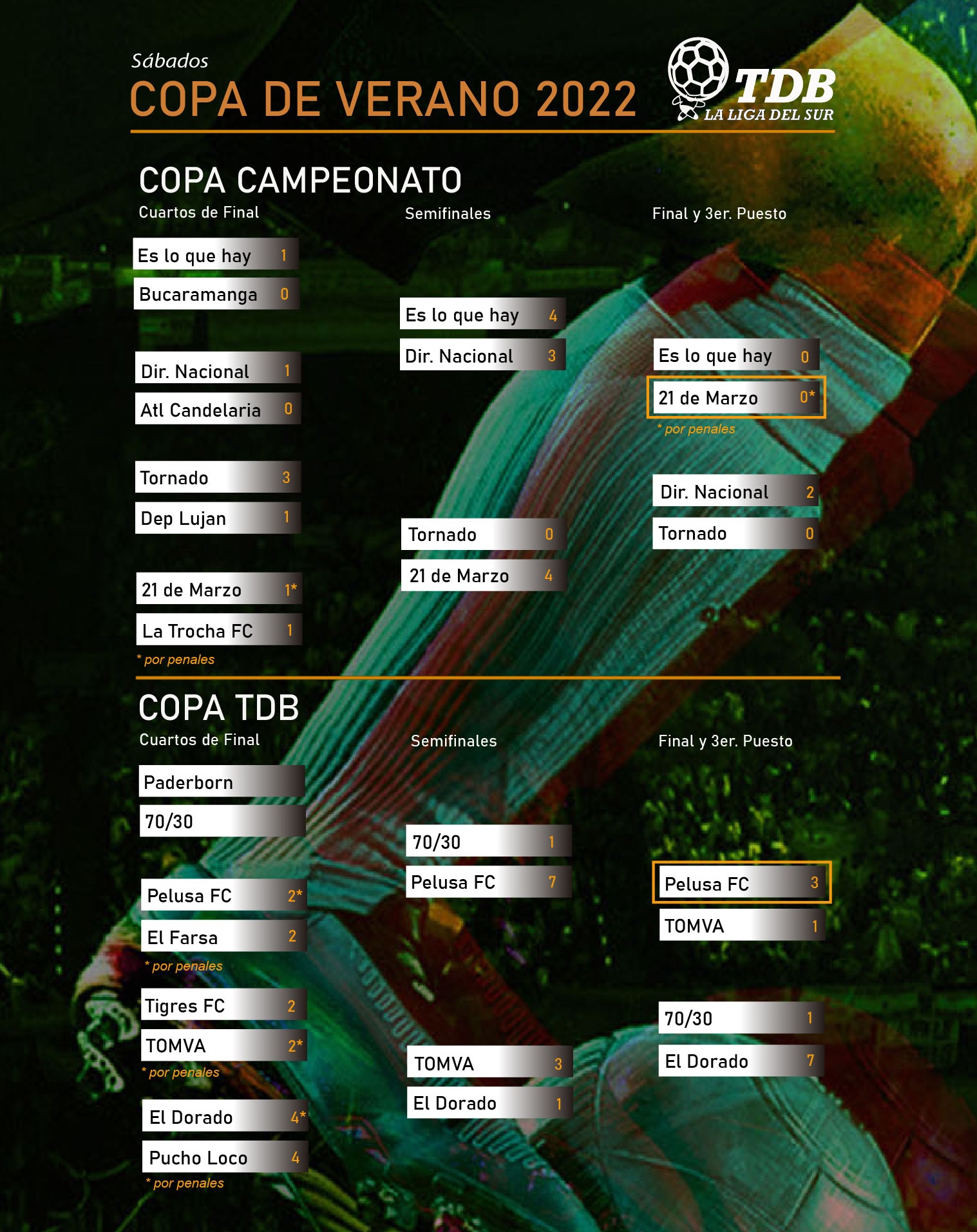 En caso de empate se ejecutarán penales (cinco x equipo)
